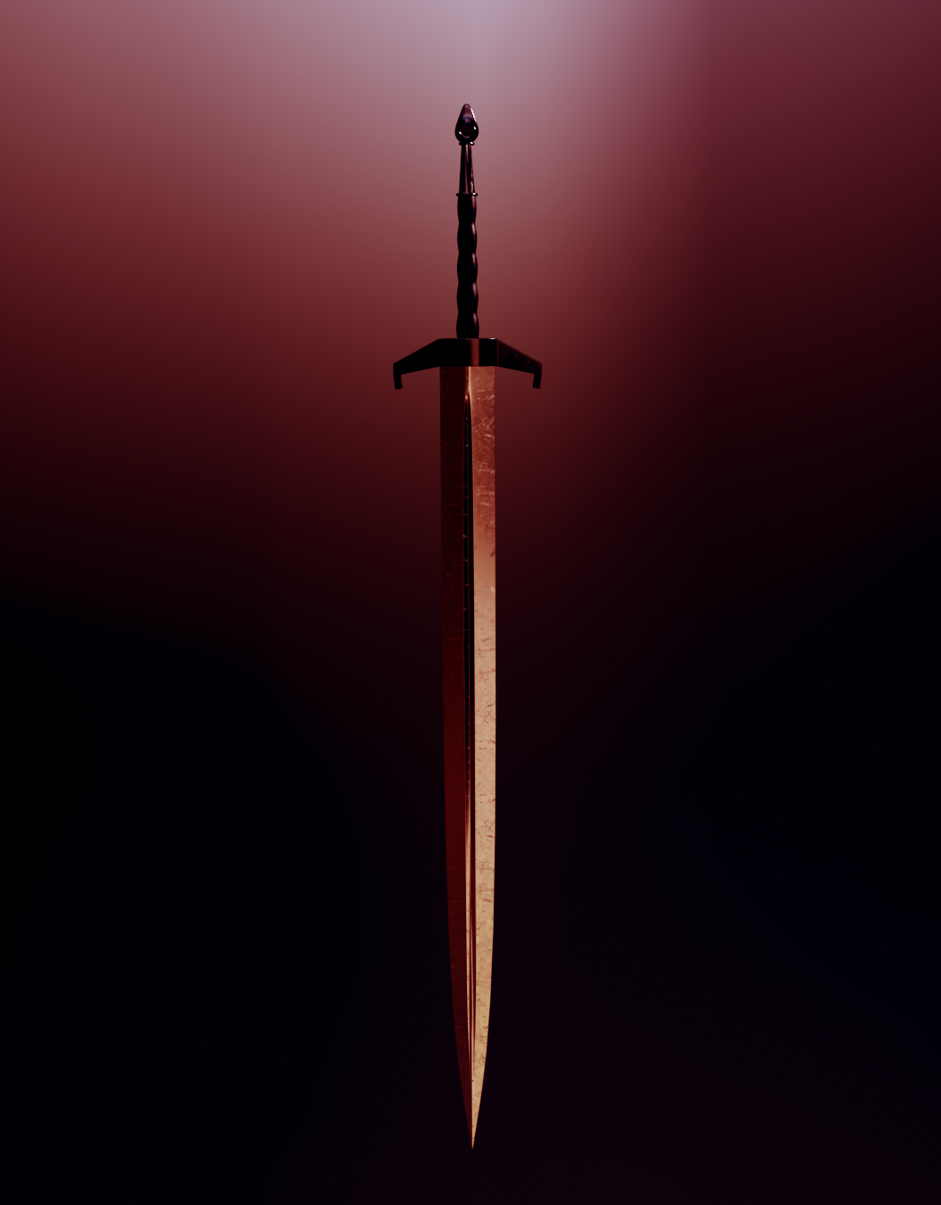 Using the same sword asset I chose to experiment with how the colour of a scene can affect the overall feel and vibe. To experiment I simply chose to alter the colour of the background world, changing it to a deep, blood red. This worked exactly as I had hoped, changing an atmoshperic and mysterious object into something that feels inherently evil.
